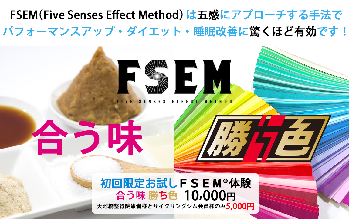 明石家さんまさんの「ほんまでっかTV」でも話題になったメソッドでオリンピアン、トップアスリートや有名芸能人も取り入れています!Five Senses(五感) Effect(効果) Method(方法)の略で、 人間が本来持っている五感にアプローチし、その人に合った感覚刺激による身体の反応を利用してパフォーマンスアップやダイエット効率を高める方法です。鍼灸整骨院併設ジムで取り入れているのは全国初です!